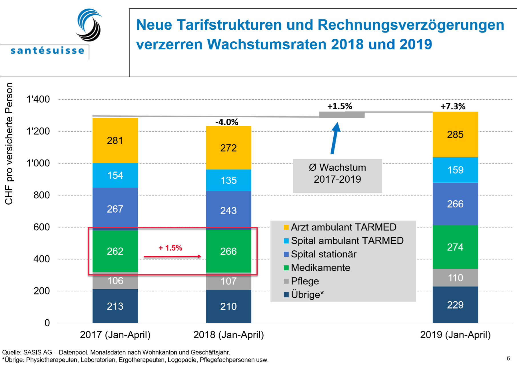 Die Gesundheitskosten sind seit 22 Jahren noch nie so wenig angestiegen wie 2018, so eine aktuelle santésuisse-Statistik. Nur die Kosten für Medikamente seien stärker gewachsen als im Vorjahr. Ich wäre froh, Sie könnten uns diese Statistik zur Verfügung stellen. Wir haben Zahlen, welche genau das Gegenteil aussagen. Uns Apotheker so an den Pranger zu stellen ist unredlich und inakzeptabel.