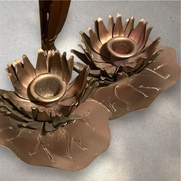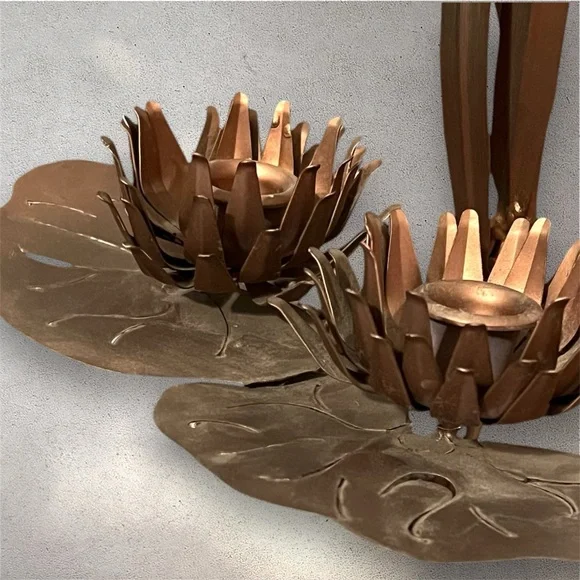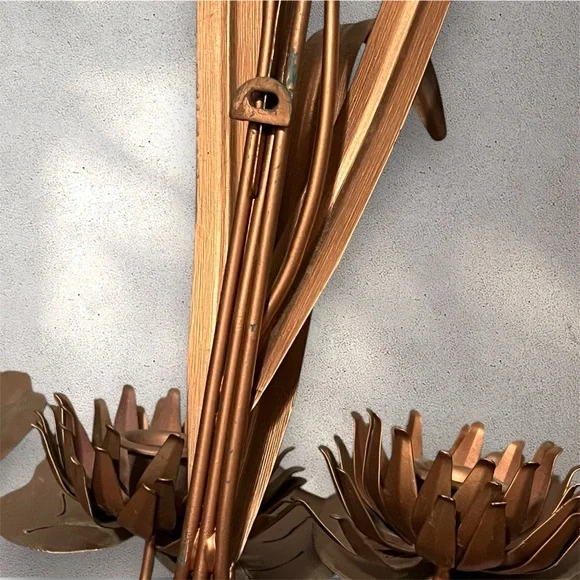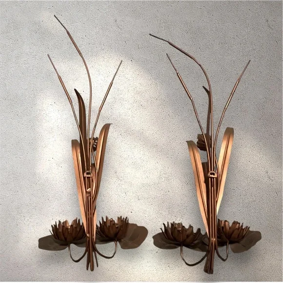1950’s Tole Lotus, Lilly Pad, Cattail Wall Sculptures Candle Holders SconceFabulous vintage tole metal candle sconces.Set of two wall sculptures / candle sticks. Metal tole of Lilly pad, lotus and cattails. Wall decor, vintage Granny Chic artworkPlease see photos as they are part of the description. Measurements are also captured in photos. Vintage, used, good to excellent condition Tags:Accessories, home, wall, artist, sconce, candle, 50’s, 1950’s, retro, vintage, grandma chic, art, sculpture, floral, decor, new home, gift