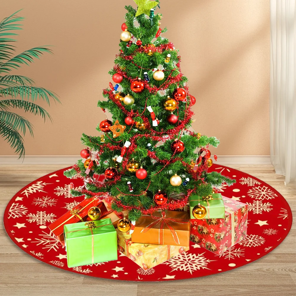 Feature: 1. Ample Size for Versatile Use: This christmas tree skirts is large enough to accommodate and showcase a wide array of items, making it perfect for trees of all sizes, both indoors and outdoors. It provides ample space to display your desired decorations and ornaments. 2. Convenient Folding Design: Easily foldable and expandable, this xmas tree skirt offers hassle-free storage when not in use. Its collapsible feature allows for effortless setup and takedown, ensuring convenience throughout the holiday season. 3. Enhances the Christmas Tree and Presents: This charmingxmas tree bottom decor mat is specifically designed to add an attractive touch to your tree, making it the centerpiece of attention during the festive season. It beautifully complements the presents placed on top, creating an enchanting display that enhances the overall visual appeal. 4. Protects Floors from Tree Debris: The large size of this red xmas tree mat not only adds to the visual appeal but also serves a practical purpose. It effectively prevents loose needles or sap from falling onto your floors, keeping them clean and protected during the entire holiday period. 5. Creates a Joyful Christmas Atmosphere: The oversized tree skirt sets the stage for a delightful Christmas night, bringing a festive ambiance to your home. Crafted from rustic burlap fabric, it exudes a cozy, traditional Christmas feeling, adding warmth and charm to any comfortable holiday theme. This tree skirt is the perfect addition to your home decor collection or a thoughtful gift for someone special. Specification: Origin: Mainland China Material: Cloth Diameter: 90cm/35.4inch Material: Brushed material