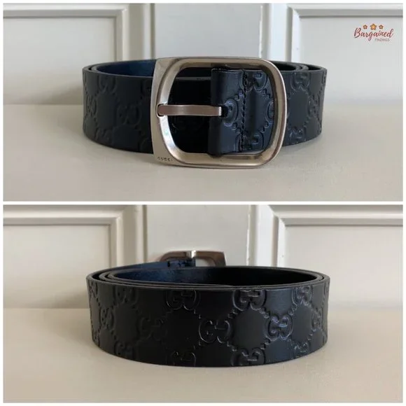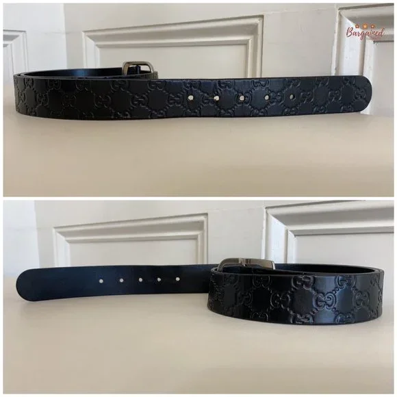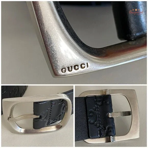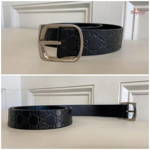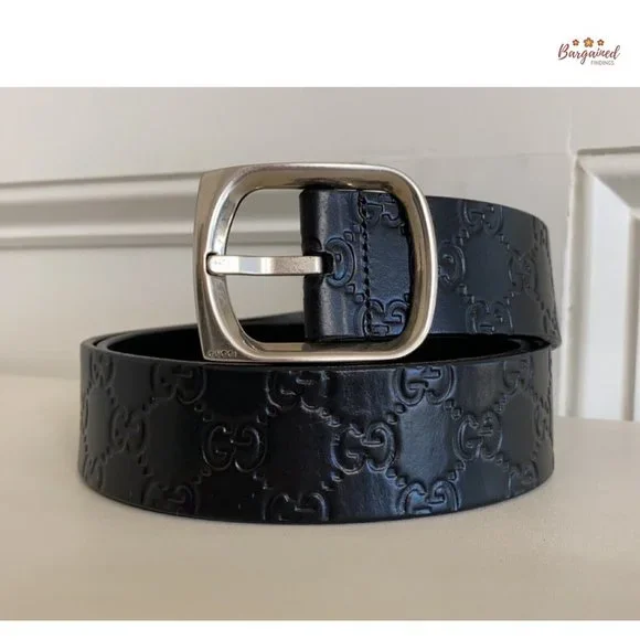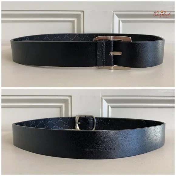 Authentic Gucci Black Monogram Guccissima Leather Silver Buckle Belt 100/40PRODUCT DETAILS:▶Condition is Pre-owned▶Exterior: Minor Wear▶Interior: Minor Wear▶Hardware: Minor Scratches ▶Size: 100/40▶5 Holes ▶Adjustable▶Waistline from 38" up to 42" ▶Closure: Silver Brass Buckle▶Hardware Color: Silvertone ▶Date/Authenticity Code: 211562 - 479610▶Country/Region of Manufacture: Italy▶Dimensions: 46.25"L x 1.5"W▶Reference Number: 021524-155RB90
