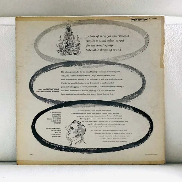 Artist: The George Shearing QuintetTitle: Velvet CarpetFormat: LP, Album, MonoLabel: Capitol Records - T 720Media condition: Near Mint (NM or M-)Cover condition: Very Good Plus (VG+)Plastic or paper inserts/envelopes/sleeves are not graded, only cover/jacket and vinyl itself are.Original Record in NM Condition with Original Cover (The sides are taped for damage prevention).Vinyl, LP, Record, Music, Songs, Musician, Singer, Artist, Band, Rare LP, Rare Vinyl, Rare Record, Old Music, Music Album, Old Vinyl