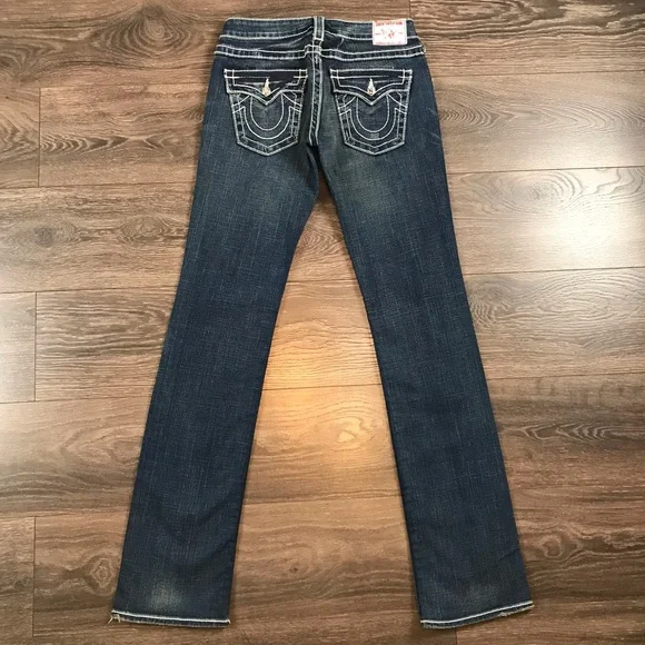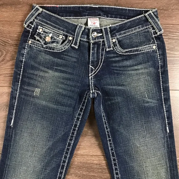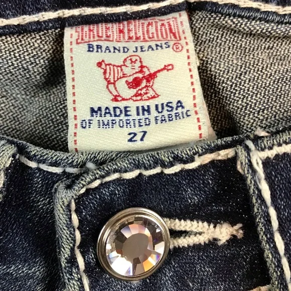 True Religion Disco Billy Big T Women’s Vintage Princess Diamond Cut Denim JeansItem #: 54Vintage:100% AuthenticMade In USA Color: BlueSize: 27Flat: Measurements:Waist: 14.5” inInseam: 34.5” inPre-Owned*Disclaimer: Some photos might appear brighter or darker. Used clothing may have some imperfections, such as fading, markings, stains, rips, age spotting, snags, loose thread, graphic cracking and fuzzies.Please review all photos and we encourage to ask questions before purchasing.Thank you,