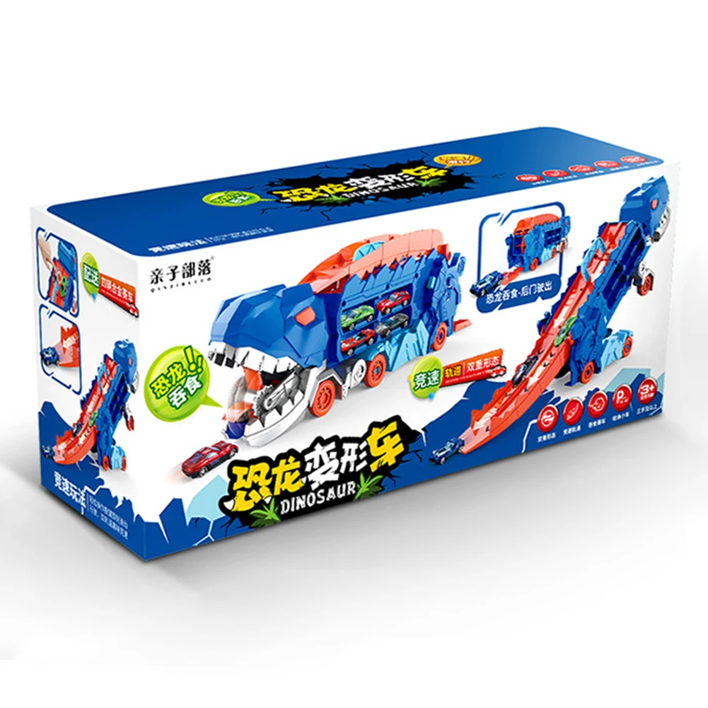 1.Multi-Functional Design: This dinosaur toy combines car swallowing, dinosaur transformation, and storage capabilities, offering a 3-in-1 play experience. Children can enjoy the fun of a dinosaur swallowing cars, transform it into a standing dinosaur, and utilize the sliding track. Specification: Origin: Mainland China Size: 432.00x175.00x143.00mm/17.01x6.89x5.63inch Recommend Age: 7-12Y Material: Plastic Equipped with 12 cars